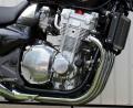 Die Linienfuehrung der hellen Kederbaender bzw. der Stickerei harmonisiert mit der Silhouette des Motorrades sehr gut.