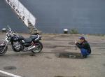 Auch haben die fotografiert M,s bike. und dass schönste is dass er ein schoene pin bekommen hat weil er X4 fahrt.