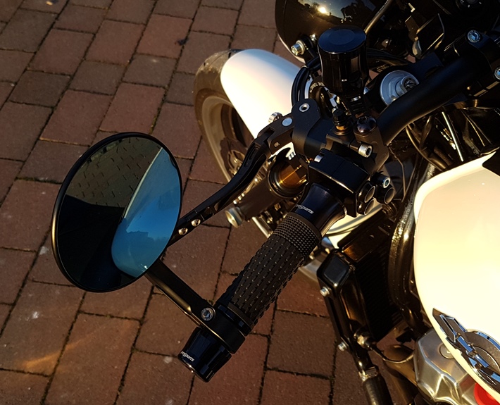 Die Technik bietet Motogadget an, Taster, Umwandelpille für Lenker, Steuergerät, etc.